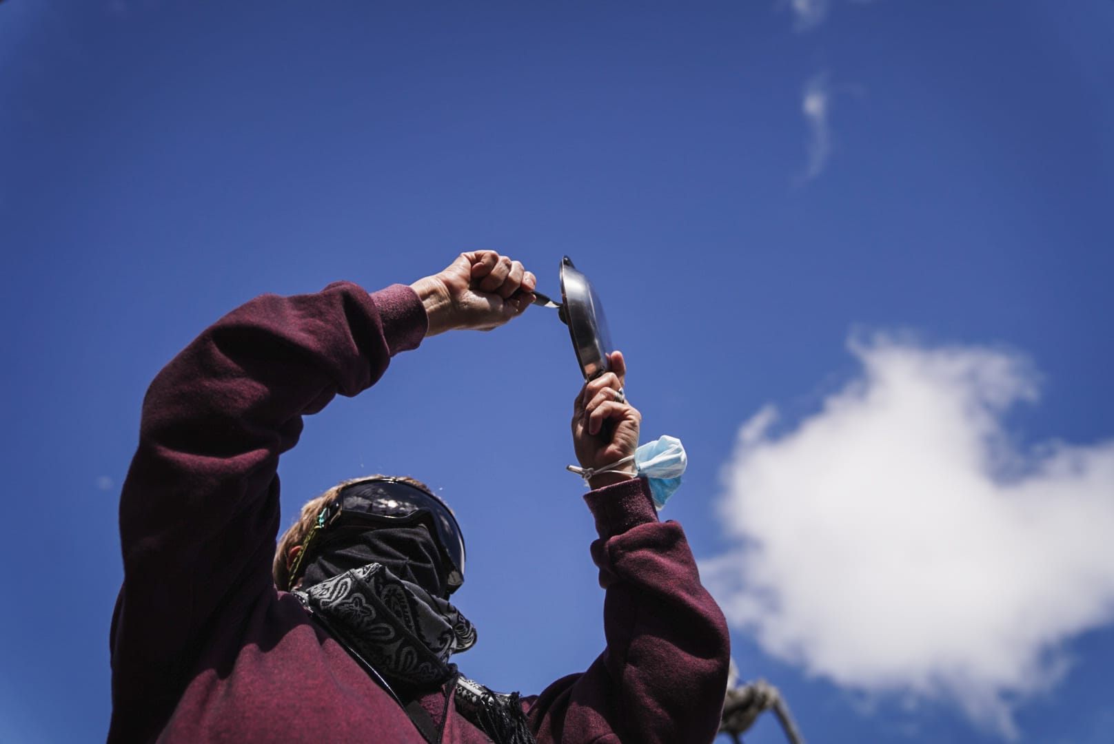 Cacerola y máscara antigas.
