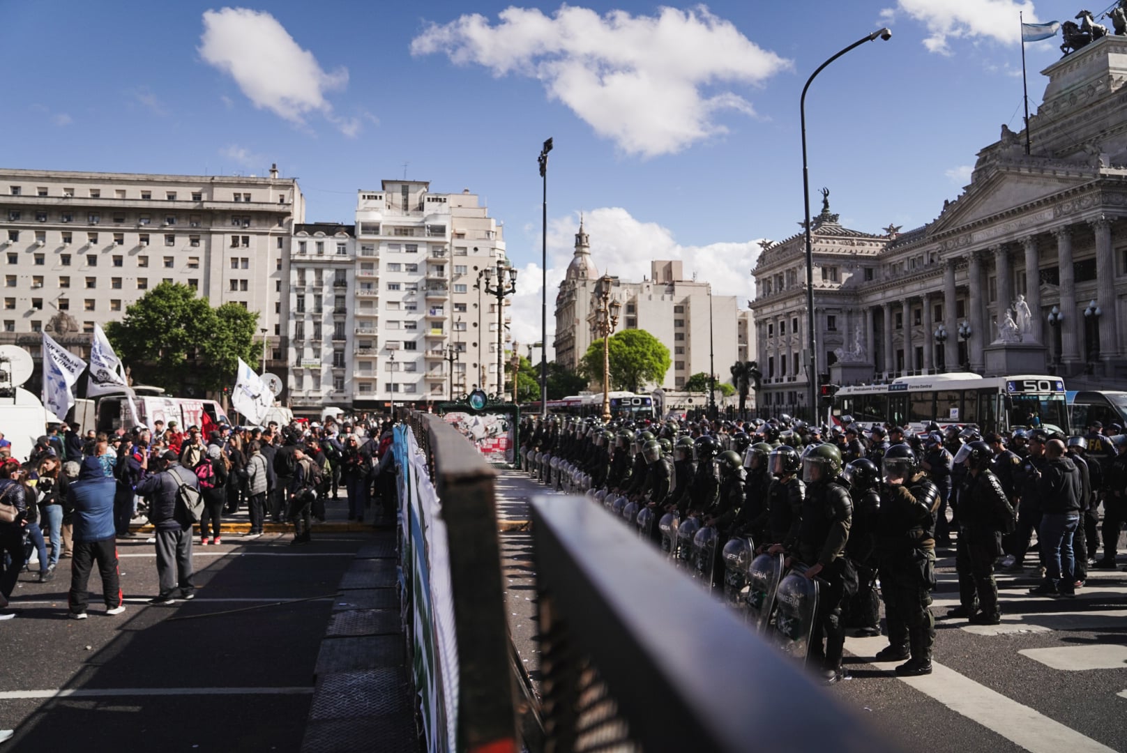 La Policía Federal termina de acorralar a los pocos manifestantes –y a los muchos fotógrafos– que aún quedan del lado del Congreso hasta terminar de cerrar la hilera de vallas. A la tensión le sigue una serie de gaseadas que deja a 11 personas heridas, según la Comisión Provincial por la Memoria.