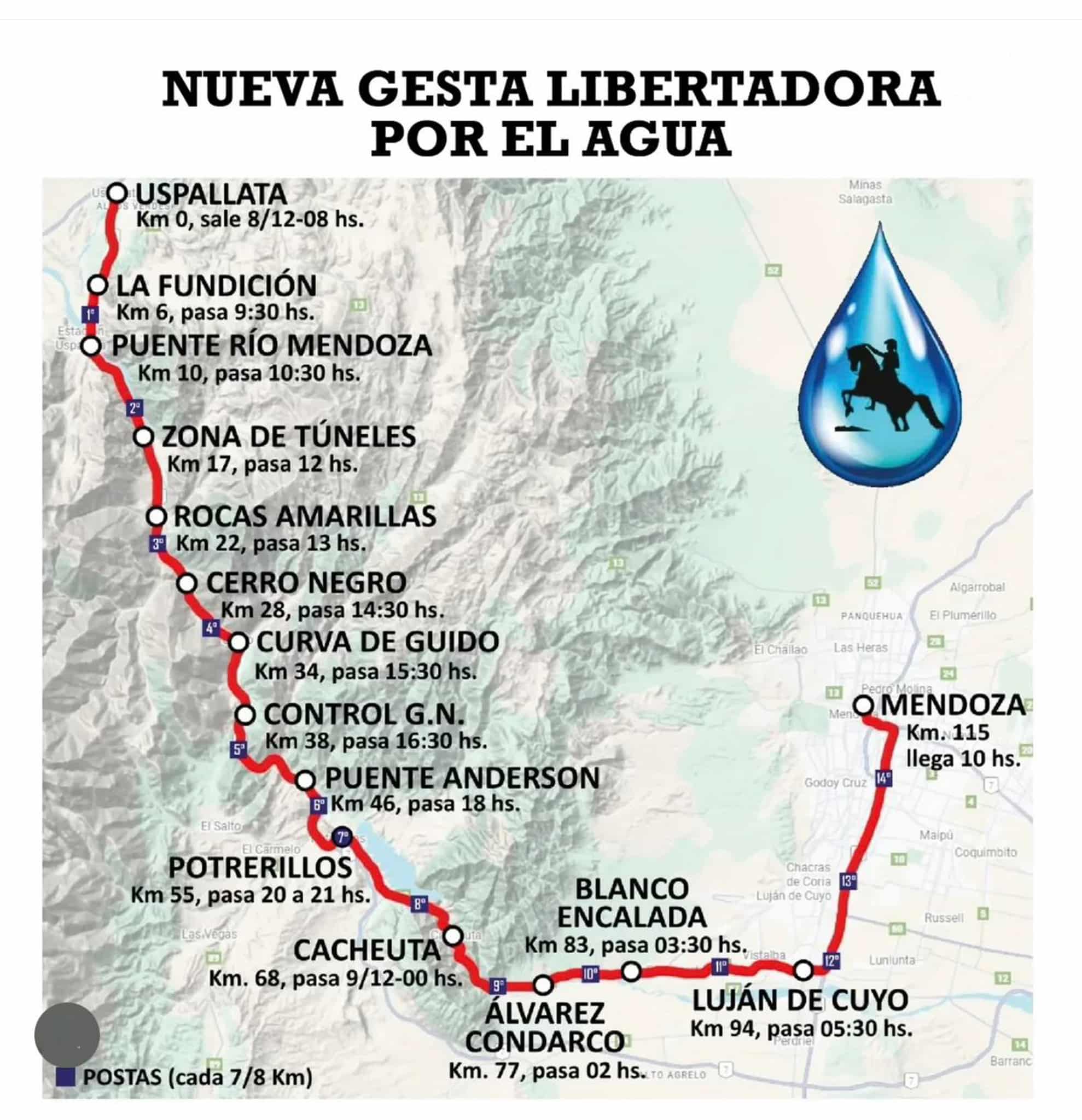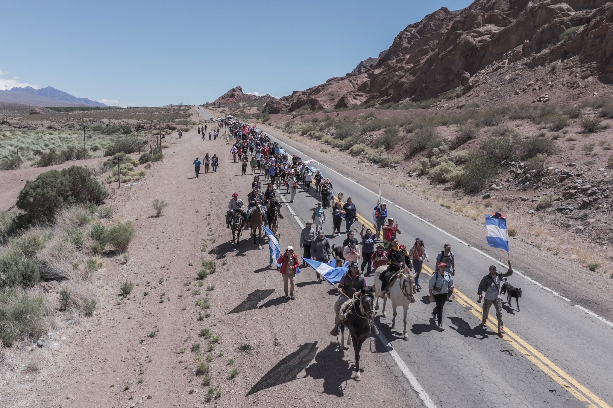 El pueblo de Mendoza empezó este lunes la “Nueva gesta libertadora por el agua”. Una caminata que partió a las 8 desde la localidad de Uspallata, al norte de la provincia y llegará este martes alrededor de las 10 de la mañana a la puerta de la Legislatura en Mendoza Capital, donde la Cámara de Senadores votará la Declaración de Impacto Ambiental (DIA) del proyecto minero San Jorge. De aprobarse, según se presume que ocurrirá, autorizará un proyecto rechazado desde 2007 que no cuenta con la llamada “licencia social” por parte de las comunidades y cuyos estudios de impacto ambiental ya fueron rechazados.