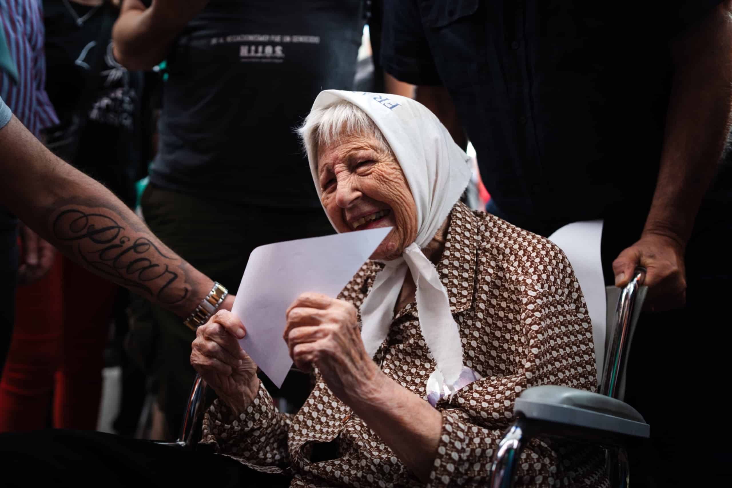 La Madre de Plaza de Mayo Línea Fundadora Vera Vigevani de Jarach murió a sus 97 años. Llegó a la Argentina escapando del fascismo, su abuelo murió en Auschwitz y la dictadura argentina le arrancó a su única hija, Franca Jarach, desaparecida el 25 de junio de 1976, a sus 18 años. Desde entonces no dejó de buscarla y participar en cada acto de lucha, como se la ve en esta foto por la defensa del espacio de memoria en la ESMA, con una sonrisa. La despedida a Vera será este viernes, de 17 a 20 horas, en la Legislatura porteña (Perú 160), y continuará el sábado de 8 a 10. El cortejo partirá luego al cementerio de Chacarita.