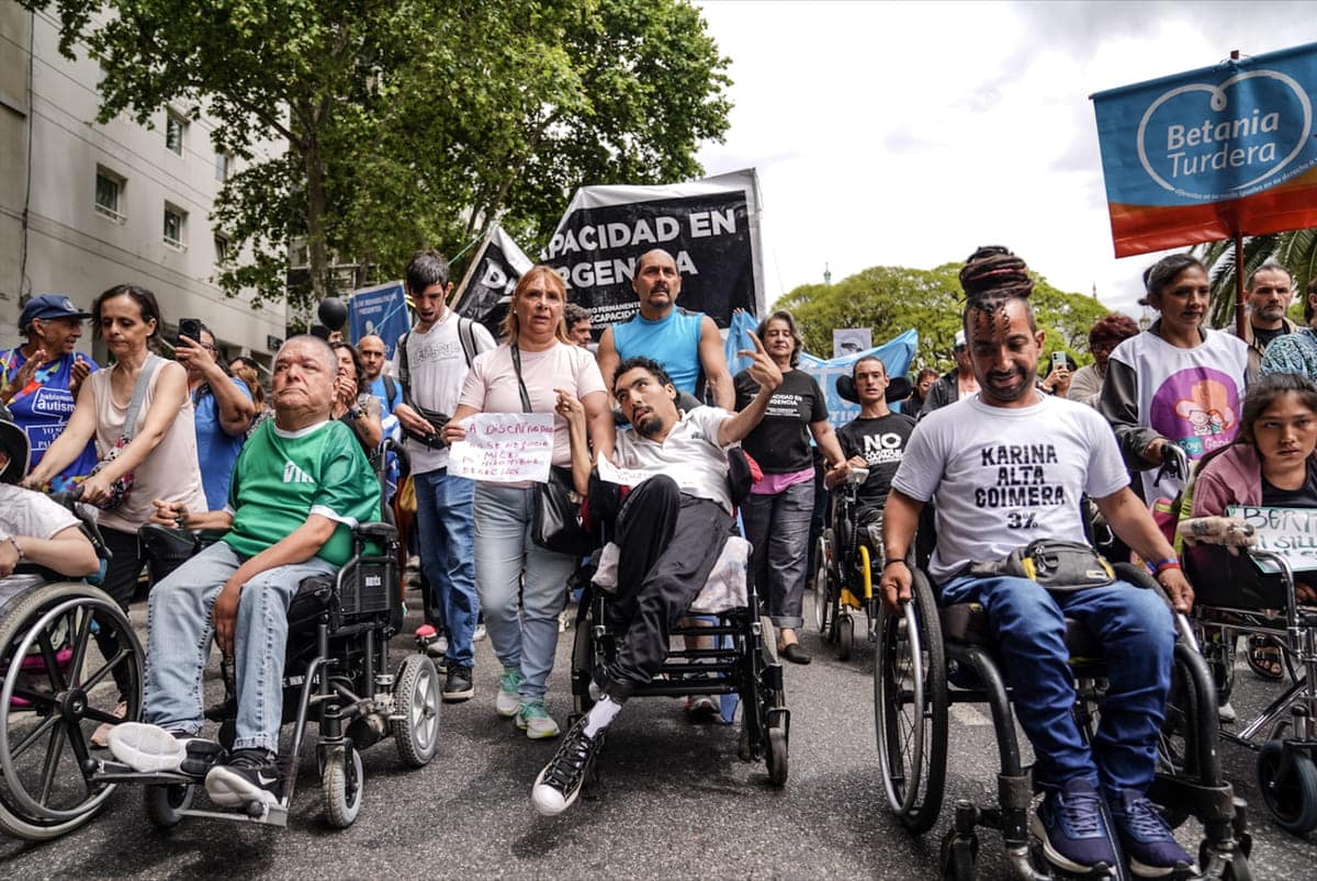 Una de las marchas discas por el centro porteño. No se privaron de ser atacados por policías y gendarmes. Jony define: “No somos pobrecitos, ni tarados, ni imbéciles. Somos discas y lo que queremos es vivir”.