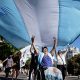 Sobre diagonal norte, casi rozando la esquina de Florida, desde el camión se agita un pañuelazo blanco, en honor a las Madres, con Taty Almeyda como abanderada. Frente a la embajada de Israel un grupo agita banderas palestinas mientras en las remeras negras proclaman “Nuestro orgullo no banca genocidios”. Son quizá las únicas manifestaciones políticas explícitas, a excepción de la foto de Cristina que decora banderas que se ofrecen por mil pesos y tampoco se compran, como todo lo mucho que se ofrece: se ve que no hay un mango, dirá la vendedora, resignada. Lo escaso, entonces, es lo que sobra porque falta.