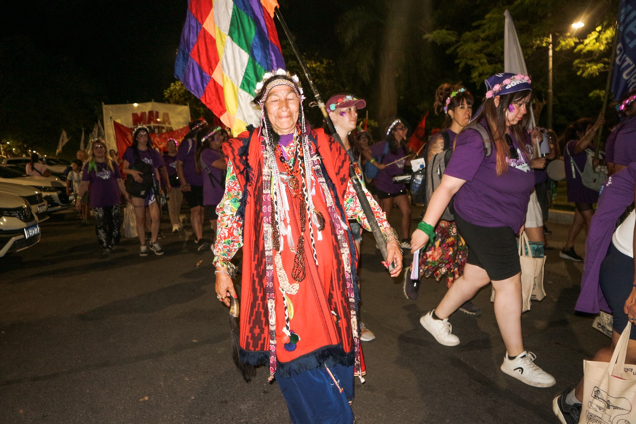 A las siete y pocos minutos, la marcha de cierre del 38º Encuentro Plurinacional de Mujeres, Travestis, Trans, Lesbianas, Intersex y No Binaries partió de un parque con color emblemático: Poncho Verde. Apenas dos cuadras después ya hacía llorar a una señora asomada a la ventana y agitar los brazos a su vecina, tres pisos más arriba, mientras una tercera se atrevía a aplaudir. La multitud se detuvo para saludarlas y, con ese abrazo a distancia, la marcha se sintió bendecida.
