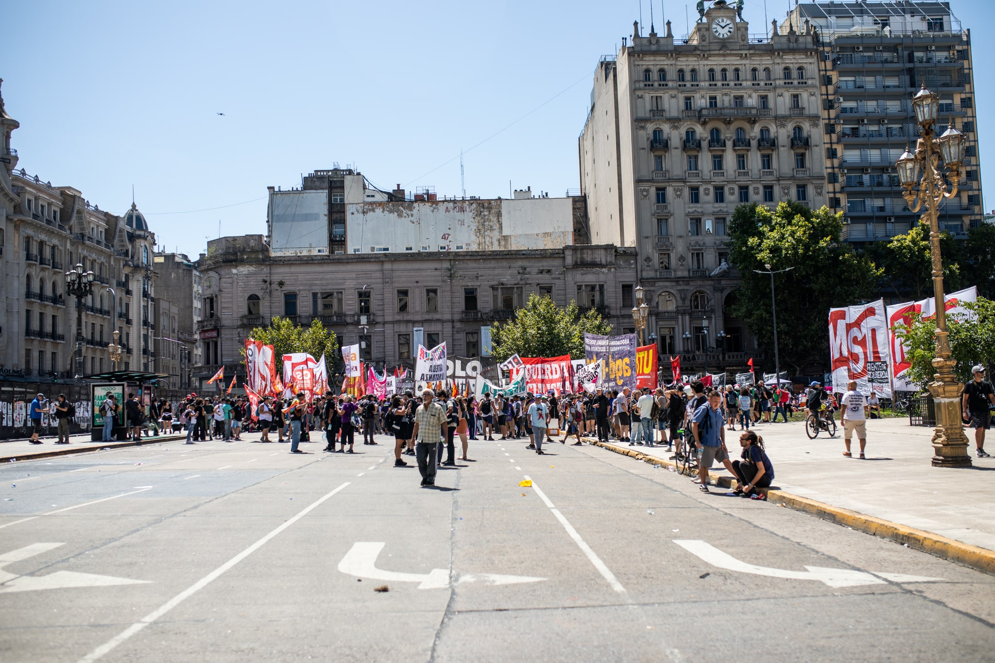 En ese momento comenzaron a oírse más los megáfonos de los partidos de izquierda que se agolpaban sobre Rivadavia, casi esquina Callao, frente al vallado.