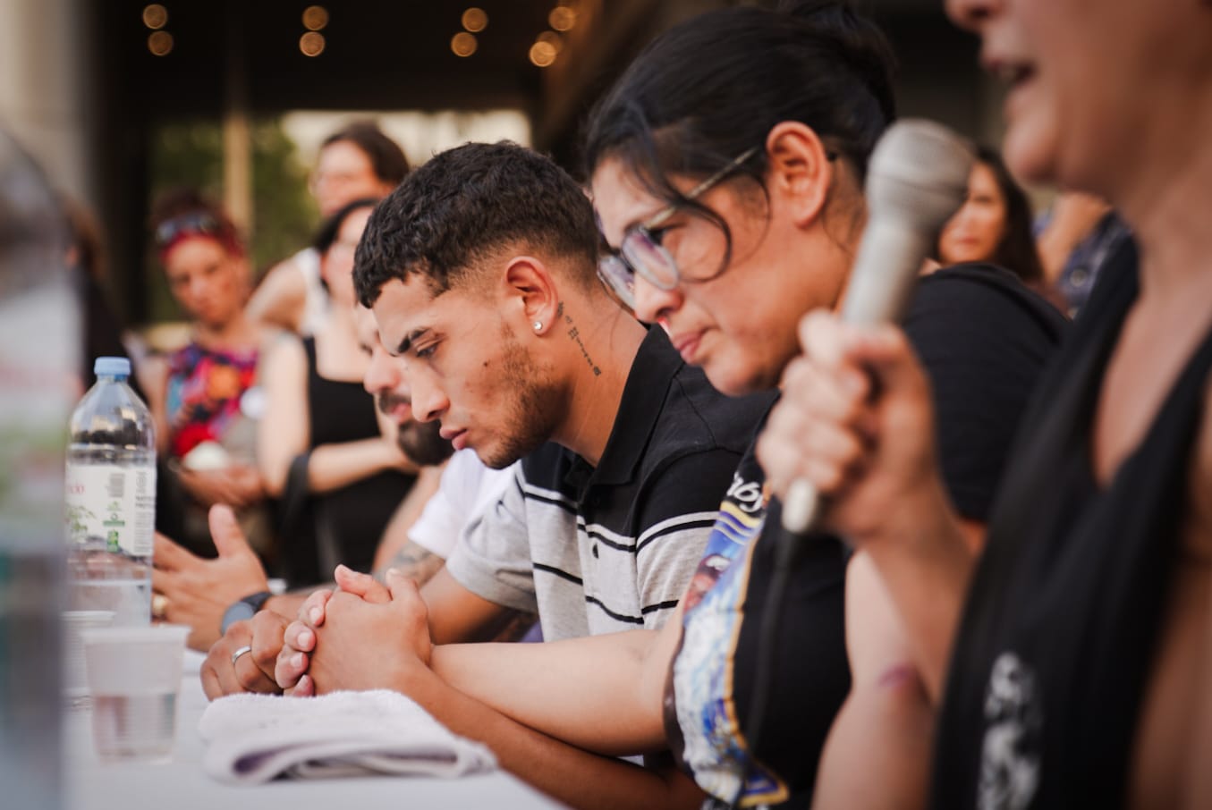 Entre quienes escuchaban estaba Fabián Grillo, el papá de Pablo, fotógrafo que sigue recuperándose de una granada de gas lacrimógeno que le rompió el cráneo lanzada por Gendarmería, en la marcha de jubilados del 12 de marzo.