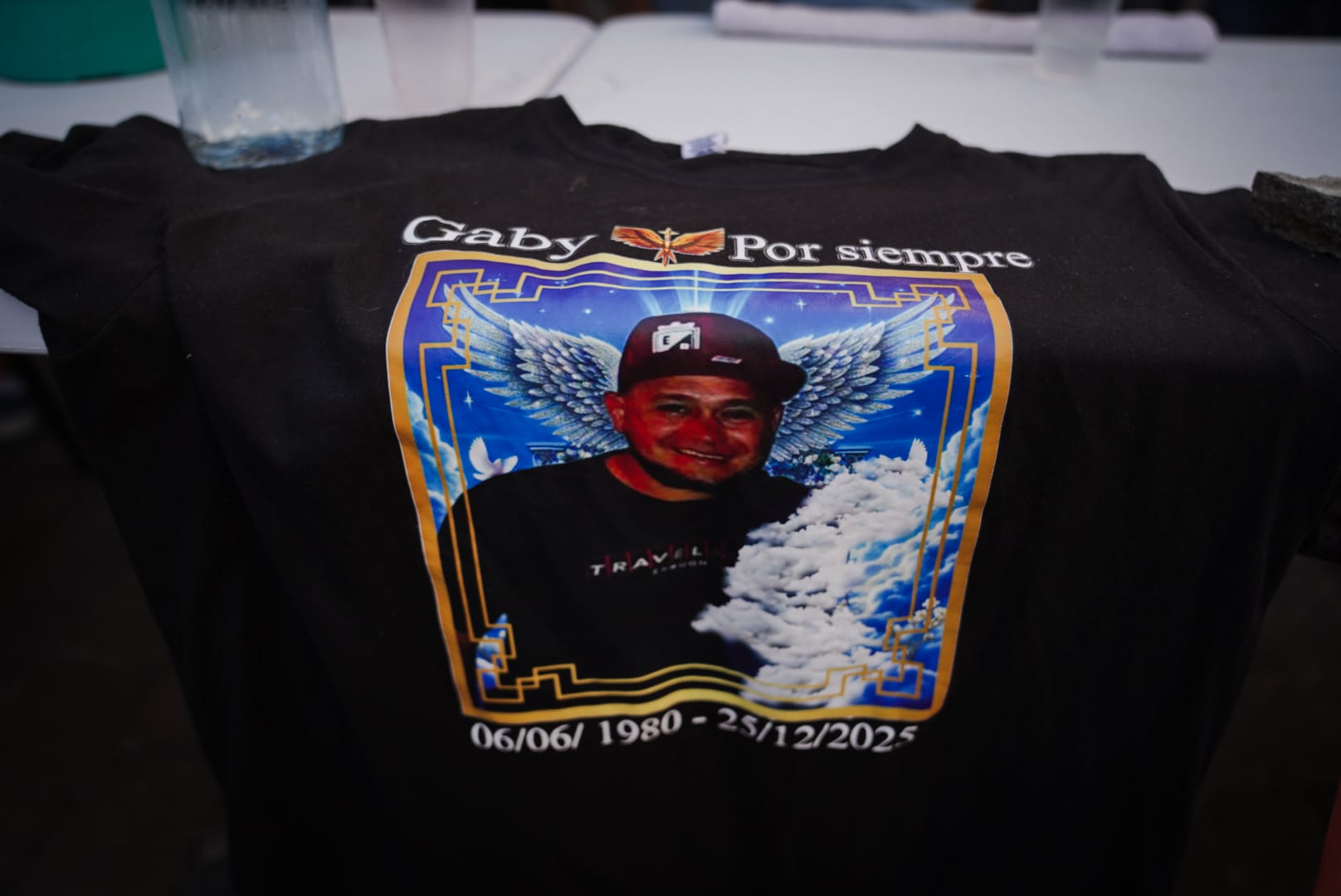 De la camiseta, a su voz: “Venía de festejar la Navidad con sus amigos, quería entrar al pasillo de su casa y no lo dejaron y ahí empezó todo. Le pegaron desde un primer momento, a él, que era una persona buena, solidaria, del que todo el barrio habla bien. Necesito que me acompañen para que se haga justicia por Gabriel y por todas las personas que murieron así”.
