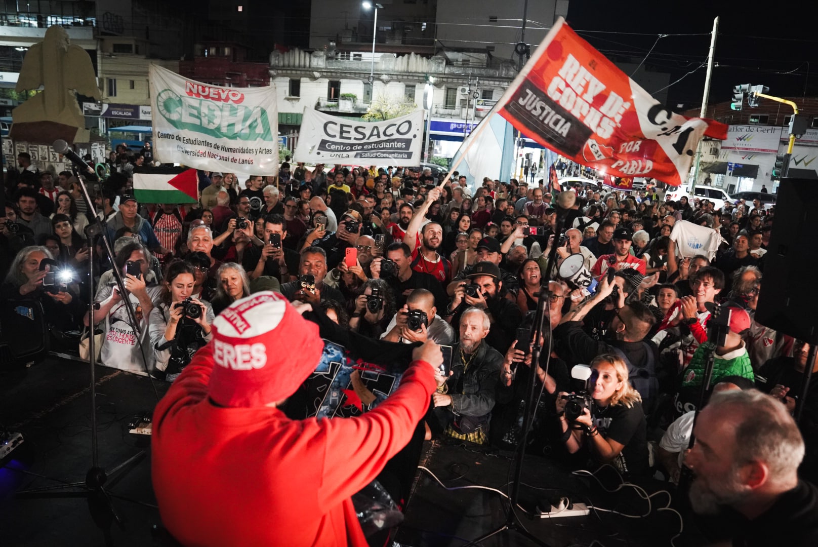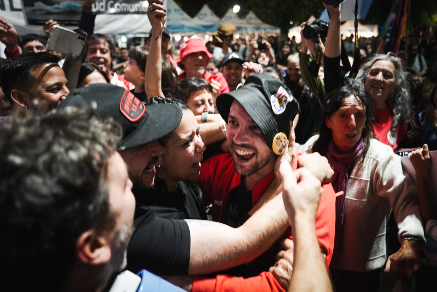 La gente estalla al unísono con un único grito: “Olé, olé, olé, olé, Pablo, Pablo”. Se va Peteco y sube Fabián Grilloo: “Donde habló el arte no se puede agregar más nada. Se dijo de la forma más linda. Esta gente (señala al Congreso) y esta gente (señala a la Casa Rosada) no quiere que estemos contentos, nos quieren arrodillados, tristes, y esta felicidad, esta alegría, este canto es un acto de alegría, con nosotros no van a poder. Y esto lo demuestra la sonrisa de Pablo que vemos en cada cartel”.