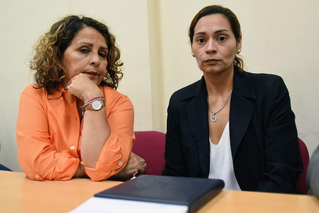 Sabrina y Alejandra en la puerta de Tribunales. La próxima audiencia será el 25 de febrero.